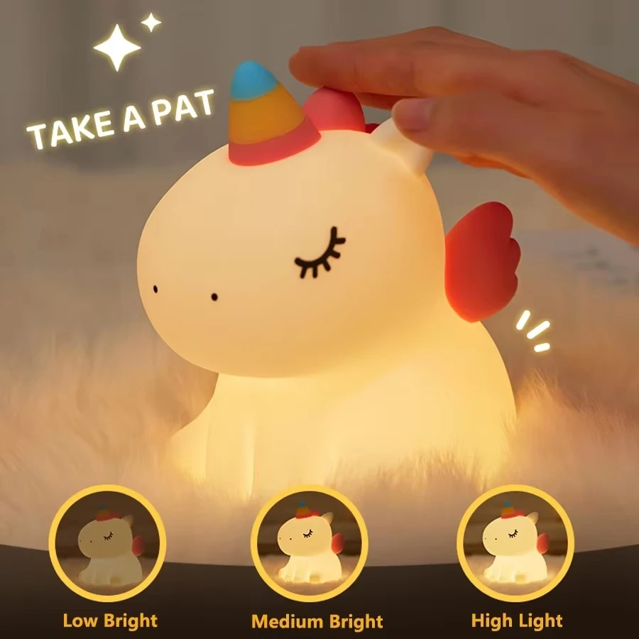 This cute and useful Axolotl-shaped silicone night light is the perfect companion for any bedside. It features three levels of adjustable brightness—easily controlled by a gentle pat—to meet the requirements of different scenarios, from a soft glow for sleeping to a brighter light for reading. USB rechargeable and featuring a timing function, this soft-light lamp is a thoughtful and charming gift for kids. Made from high-quality, durable, and safe materials, it provides a comforting glow to help children feel secure at night.